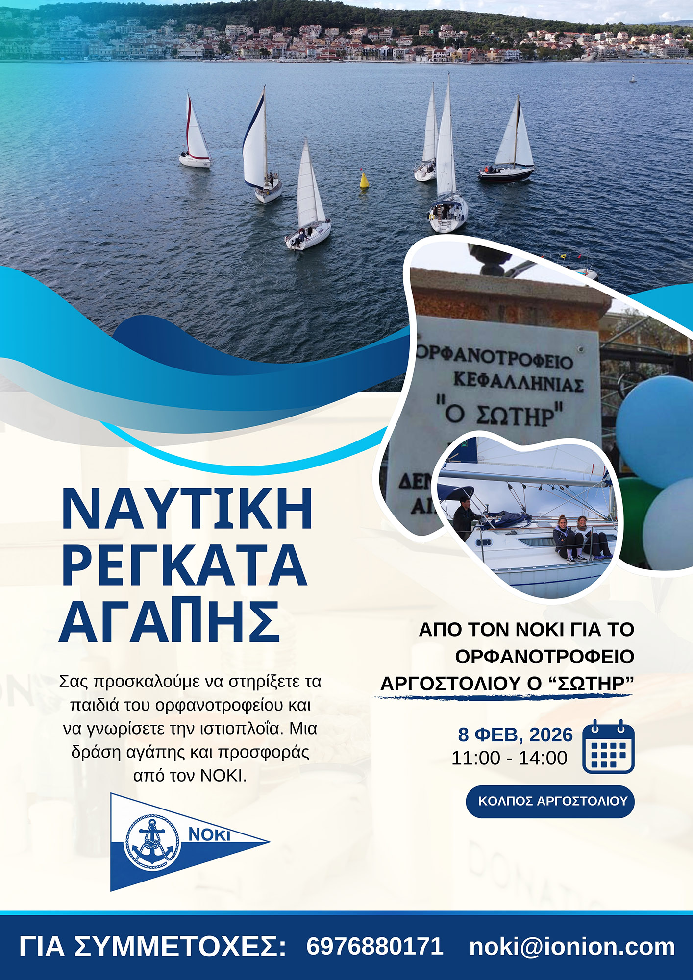 Η δράση έχει διπλό στόχο: αφενός την οικονομική ενίσχυση του Ορφανοτροφείου Αργοστολίου «Ο Σωτήρ» και αφετέρου την προώθηση του ναυταθλητισμού και την εξωστρέφεια του Ομίλου μας στην τοπική κοινωνία.”*